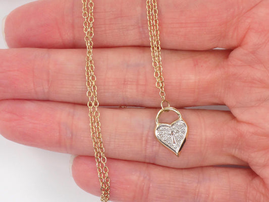 Vintage Dainty 14k Gold Diamond Heart Necklace 16"