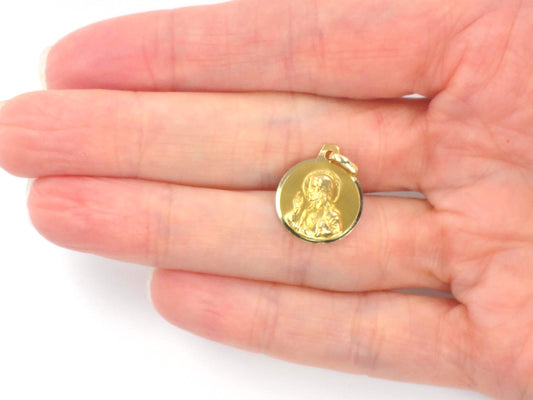 Vintage Small 14k Gold Sacred Heart Jesus Mary Medal Charm Pendant